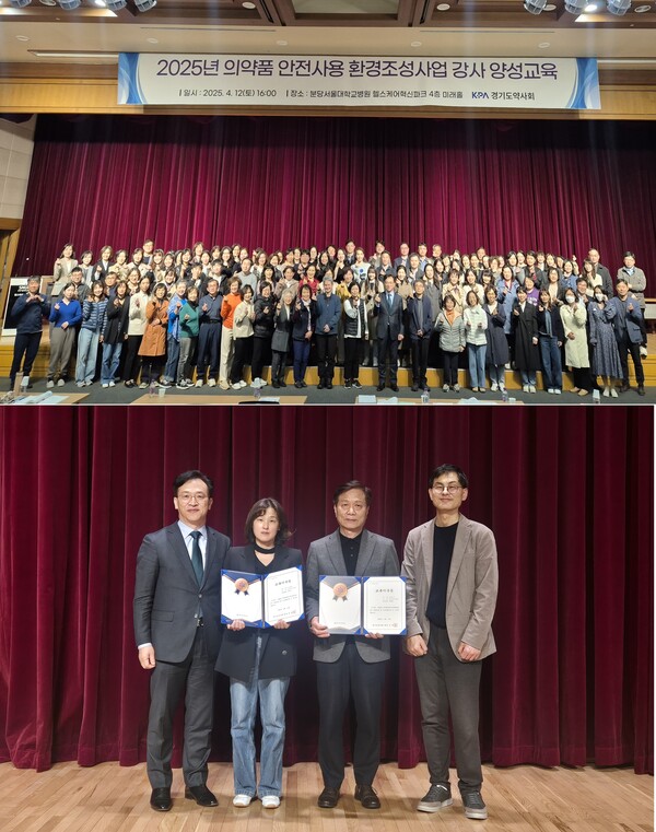 경기도약사회(회장 연제덕) 의약품안전사용·방문약료위원회(부회장 김성남, 의약품안전사용위원장 유현주, 방문약료위원장 이경아)는 지난 12일 분당서울대학교병원 헬스케어혁신파크에서 '2025년 의약품안전사용·방문약료 강사 양성교육'을 성황리에 개최했다.강사의 역량강화를 위해 개최된 이번 교육에서는 ▲사례로 살펴보는 다제약물관리(영남대학교 약학대학 아영미 교수) ▲2025년 약 바르게 알기 지원사업(약바로쓰기운동본부 이정근 부본부장) ▲의약품안전사용교육 사업별 비교 안내(경기도약사회 유현주 의약품안전사용위원장) ▲방문약료서식지 개선안(경기