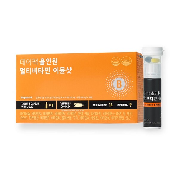 맞춤형 건강기능식품 브랜드 디에센셜 데이팩이 ‘데이팩 올인원 멀티비타민 이뮨샷’(이하 데이팩 올인원 이뮨샷)을 선보인다고 밝혔다.‘데이팩 올인원 이뮨샷’은 액상과 정제를 한 번에 섭취할 수 있는 고함량 이중 제형 비타민으로, 23중 기능성 비타민과 미네랄을 한 통에 담은 올인원 상품이 특징이다. 특히 비타민B군 1일 권장섭취량 기준 5,000% 고함량으로 담았을 뿐만 아니라, 120년 역사의 네덜란드 다국적 기업 DSM사 프리미엄 비타민 원료를 사용하여 비타민 전문 브랜드로서의 명성을 한층 높여주는 제품이다.데이팩 올인원 이뮨샷은