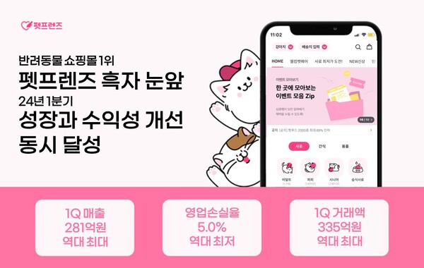 펫프렌즈(대표 윤현신)의 1분기 매출이 전년 동기 대비 15.6% 성장하고, 영업손실율도 한 자릿수인 5%로 줄어들며 성장과 수익성 개선을 동시에 이뤄내고 있다고 7일 밝혔다. 영업손실율이 한 자릿수로 감소한 것은 펫프렌즈가 생긴 이래 처음 있는 쾌거다.스타트업 반려동물 커머스 기업들이 적자폭을 줄이면서 성장세도 감소하는 경우가 많은데 비해, 윤현신 대표 취임 이후 펫프렌즈의 매출 지속 상승과 영업손실이 지속 감소되는 양상은 독보적이라 할 수 있다.실제 올해 1분기 매출이 전년 동기 대비 15.6% 증가한 281억원, 거래액도 12