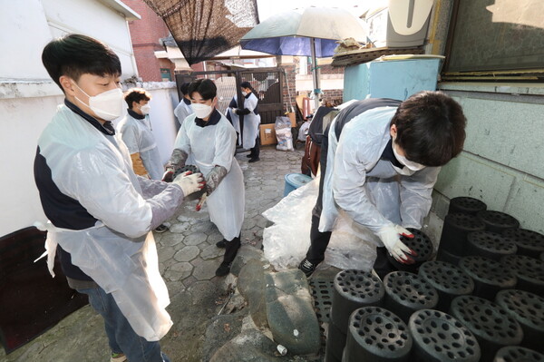 LG생활건강 노사가 함께 연탄 나눔 봉사활동을 하며 소외된 이웃들에게 사랑의 온기를 전했다.LG생활건강 생산총괄 정철용 전무와 임재성 노동조합위원장 등 임직원 50여 명은 7일 충북 청주시 청원구 우암동 일대에서 연탄 3,000장 배달 봉사를 진행했다. 청주시에는 LG생활건강의 화장품, 생활용품을 생산하는 TP공장, 청주공장이 위치해 있으며, 많은 임직원 가족들이 거주하고 있다.이날 오후 LG생활건강 노사는 3개조로 나눠서 열 다섯 가구를 직접 찾아다니며 이웃들에게 연탄을 직접 배송했다. 한 집당 연탄 200장과 생활용품 1세트씩