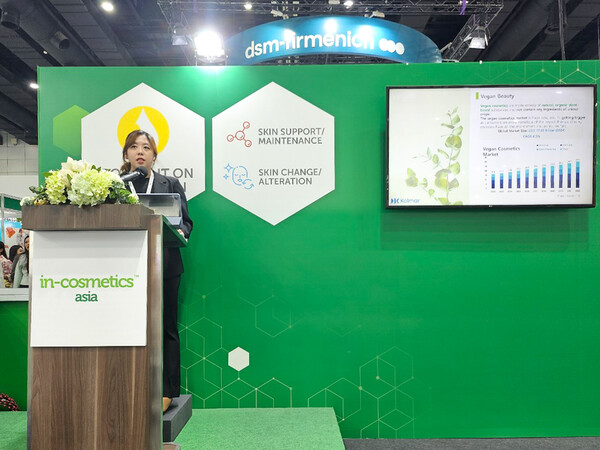 한국콜마가 동물성 콜라겐의 효능을 뛰어넘는 비건(vegan) 콜라겐 부스터를 개발했다. 최근 비건 화장품 시장이 빠르게 성장하는 가운데 혁신적인 소재와 성분을 개발해 시장을 선도해나간다는 계획이다.한국콜마는 지난 5~7일 태국 방콕에서 열린 아시아 최대 화장품 원료·소재 전시회인 ‘2024 인코스메틱스 아시아(in-cosmetics ASIA)’에서 식물성 콜라겐 부스팅 성분 ‘플로라겐(Flollagen)’을 소개했다고 11일 밝혔다. 플로라겐은 한국콜마가 특허받은 효소처리공법을 통해 개발한 성분으로, 식물의 세포벽을 깨고 당 단백질
