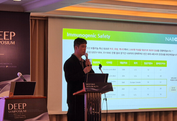 대웅제약이 의료진들과 아시아 최초 미 FDA 승인받은 보툴리눔 톡신 ’나보타’와 국산 1호 지방파괴 주사제 ‘브이올렛’의 에스테틱 분야 활용을 학술적으로 조명하고 진화된 최신 시술법을 공유했다.대웅제약(대표 박성수∙이창재)은 지난 16~17일 양일간 서울 소공동 롯데 호텔에서 국내 미용성형 의료진 60여 명이 참석한 가운데 ‘딥 심포지엄(DEEP Symposium’)’를 열었다고 21일 밝혔다. 딥 심포지엄은 대웅제약의 DEEP(Daewoong Medical-AEsthetic Expert Program) 메디컬 에스테틱 교육 프로그