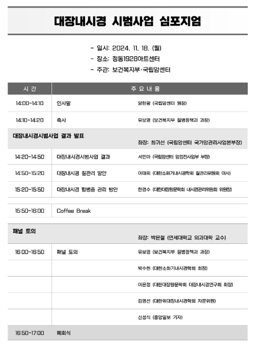 보건복지부(장관 조규홍)와 국립암센터(원장 양한광)는 18일 서울 정동1928아트센터에서 ‘대장내시경 시범사업 심포지엄’을 성황리에 마쳤다. 이번 행사는 2019년부터 2024년까지 진행된 대장내시경 시범사업의 성과를 공유하고, 국가 대장암검진의 방향성을 논의하기 위해 마련됐다. 행사의 시작은 국립암센터 암검진사업부 서민아 부장의 시범사업 결과 보고로 이루어졌다. 6년간 고양시, 김포시, 파주시 등 60여 개 기관과 118명의 인증의가 참여한 시범사업에서는 선종 검출률이 44.3%로, 타국의 유사 연구 대비 높은 성과를 기록했다.