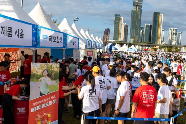 글로벌 유통기업 애터미(회장 박한길)가 2025년 10월 9일 세종중앙공원 도시축제마당에서 열린 ‘2025 세종시 한글런’ 행사에 참여해 최근 출시된 ‘헤모힘 샷’을 선보였다.한글날을 맞아 열린 이번 마라톤에는 약 1만 명이 참가했으며, 애터미는 헤모힘 샷 출시 한 달 만에 100만 병 판매를 돌파한 것을 기념해 시민들을 위한 체험 부스를 운영했다.현장에는 총 3개의 부스가 마련돼 시음 및 배부 행사, 경품 추첨, 포토존 운영 등 다양한 프로그램이 진행됐다. 참가자들은 달리기 후 음료를 시음하며 “운동 후 마시기 상쾌하다”, “간편