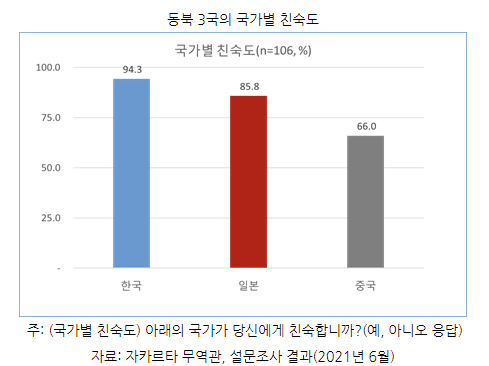 인도네시아 자카르타무역관이 발표한 ‘인도네시아, 주요 상품군별 동북아 3국의 이미지 및 구매행태 설문조사’ 결과에 따르면 동북 3국 중 한국에 대한 친숙도가 가장 높게 나타났다.