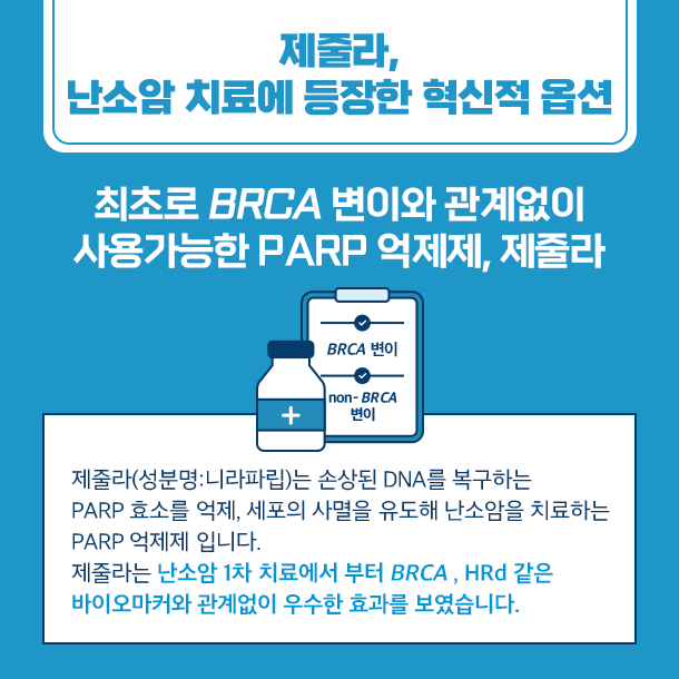 최초로 BRCA 변이와 관계없이 사용가능한 PARP 억제제, 제줄라