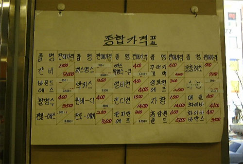 소비자들이 쉽게 찾을 수 있는 드링크제나 비타민제 등의 가격을 한 눈에 볼 수 있도록 한 것이다. 약값이 오르면 다시 오른 가격에 따라 가격표를 교체한다. 이것은 손님들이 약값에 대한 합리적인 가격을 제시하기 위한 것이라고 설명했다.