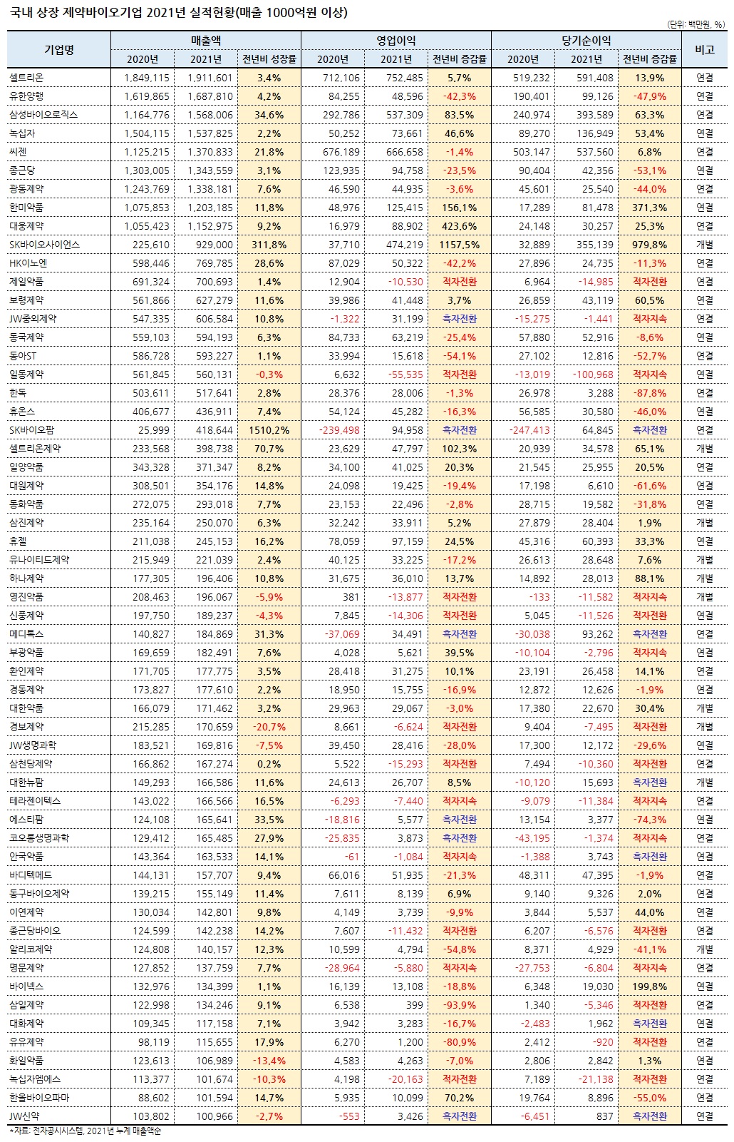 즉, 전체 중에서 절반이 넘는 제약‧바이오 회사들이 전년보다 수익성이 악화한 셈이다.