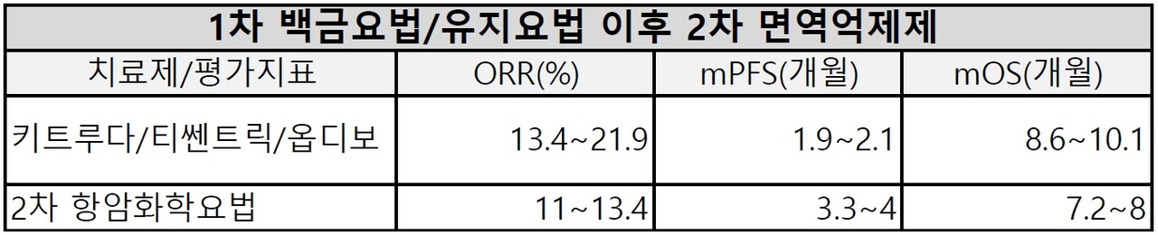 ▶1차 백금요법 이후 질환 진행에서 2차 면역항암제 사용