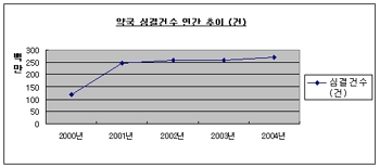 약국의 명세서 건수는 전반적으로 증가,2001년에 2000년 대비 105%, 2002년에는 전년대비 53% 증가했으나 2003년 이후에는 점차 전년대비 약 5% 이내로 증가함으로 둔화되는 것으로 나타났다.