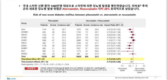 그는 리바로의 타스타틴과의 가장 큰 차별점은 혈당 안전성이며 리바로는 낮은 NODM 발생률을 보여주는 다양하고 일관된 임상적 근거들을 보유하고 있다고 지적했다.