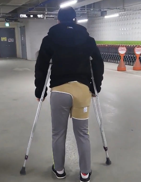 반일치 골수이식으로 인한 약물 부작용으로 인해 고관절이 괴사됐고 서울아산병원에서 양쪽 허벅지에 인공관절 치환술을 받은 것이다.