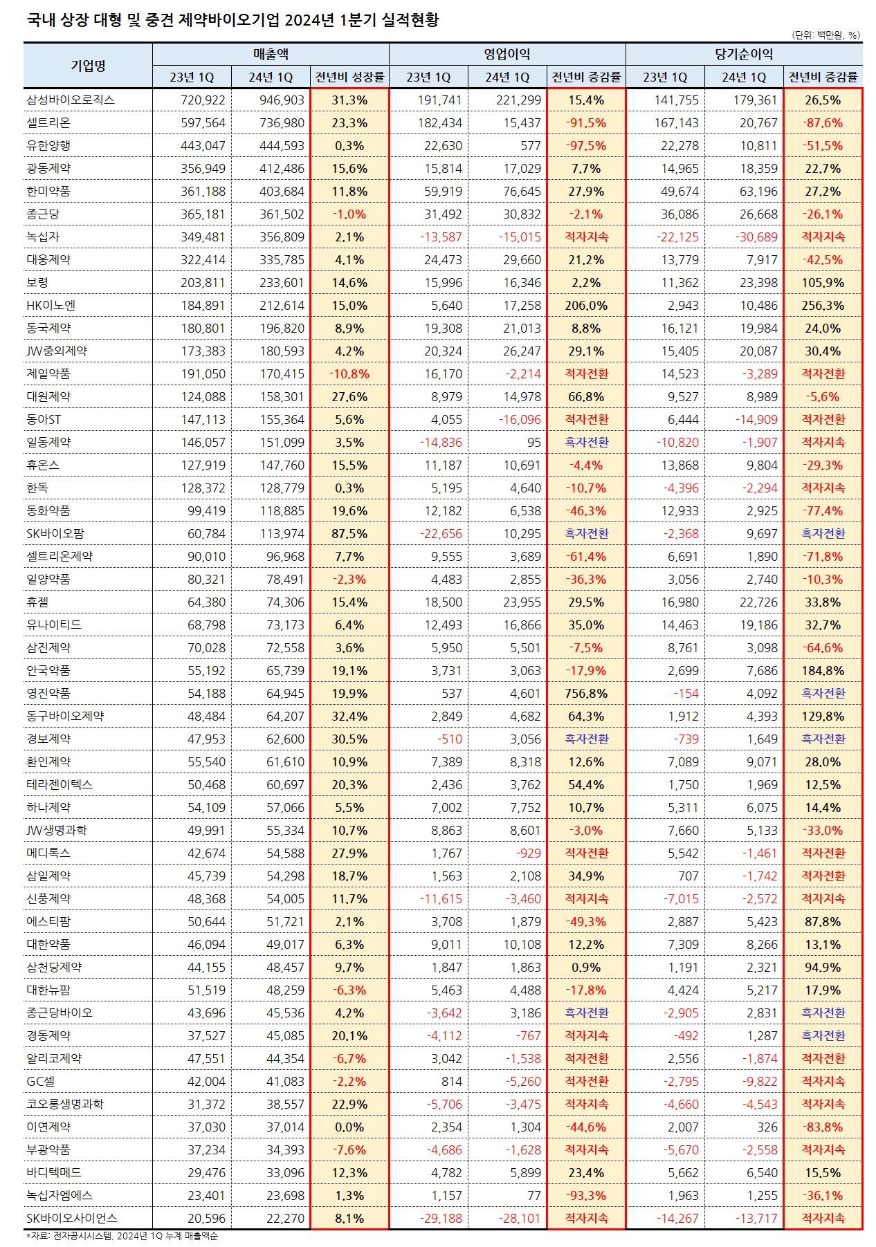 # SK바이오팜 매출 상승세 1위, 영진약품 수익성 증가 최고