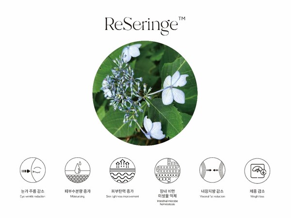 코스맥스바이오가 개발한 리세린지는 토종 수국을 원료로 피부건강 2중 기능성과 체지방 감소 효과까지 얻을 수 있는 3중 복합 기능성 원료다. 지난 2020과 2022년 두차례에 걸쳐 세가지 기능성에 대해 식품의약품안전처로부터 개별인정형 원료로 인정받았다.