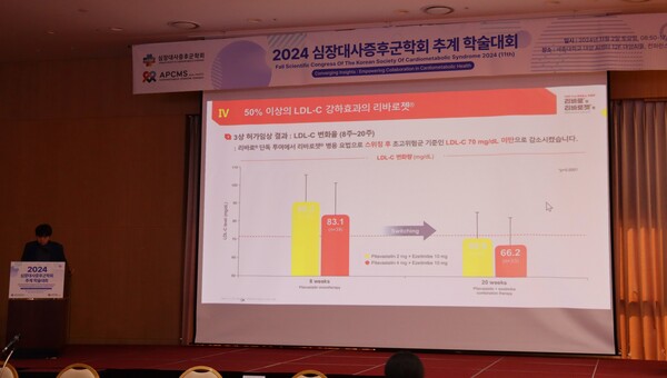[팜뉴스=구영회 기자(약사)] 지난 11월 2일 세종대학교 대양AI센터에서 개최된 2024 심장대사증후군학회 추계학술대회에서 jw중외제약이 이상지질혈증 복합제 '리바로젯(피타바스타틴+에제티미브)'의 임상적 효용성과 관련한 런천심포지엄을 개최해 의료계의 높은 관심을 받았다.