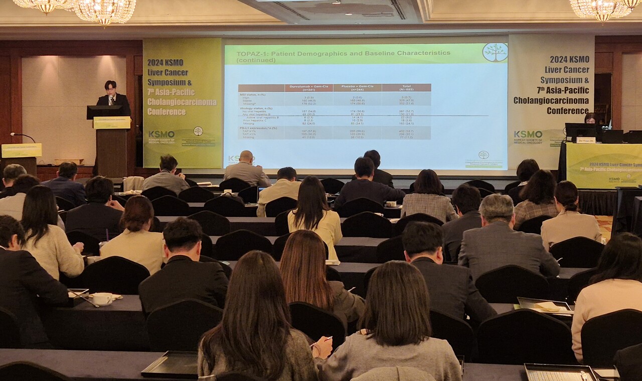 "TOPAZ-1 한국인 하위 분석을 보면 국내 담도암 환자들이 전체 환자군에 비해 1차 치료 이후 적극적으로 후속 치료를 더 많이 받았으며, 부작용으로 인해 치료를 중단하는 비율이 낮은 것을 확인했다. 통계적으로 쉽게 잡히기는 어려우나, 외국의 치료 환경에 비해 국내 의료진들의 담도암 치료 경험이 많기 때문에 보다 즉각적으로 부작용을 잘 관리할 수 있다고 본다.