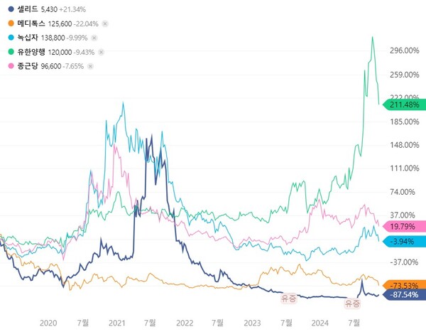 다른 제약·바이오 업계 관계자는 “우후죽순 IPO한 바이오 기업의 주가 추이가 셀리드에서도 전형적으로 나타나고 있다”며 “IPO 때 산출한 전망치가 크게 엇나간 탓에 주주들만 피해가 커지게 됐다”고 밝혔다.