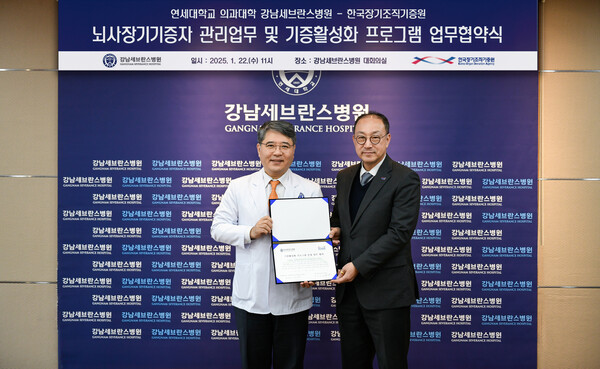 연세대 강남세브란스병원(병원장 구성욱)은 지난 22일 한국장기조직기증원(원장 이삼열)과 ‘뇌사장기기증자 관리 및 장기기증 활성화’를 위한 업무 협약을 체결했다.