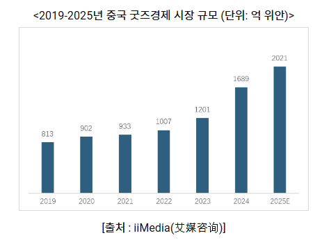 과거에는 주로 아이돌 팬덤 중심의 비주류 문화였지만, 최근 중국에서는 전문 매장 ‘굿즈점(谷子店)’이 등장하고, ‘굿즈를 먹는다’라는 의미인 신조어 ‘츠구(吃谷)’가 등장할 만큼 ‘굿즈 경제(谷子经济)’가 새로운 시장 트렌드로 자리잡고 있다.