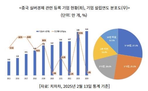 중국 고령화 산업이 빠르게 성장함에 따라 실버경제 관련 기업 수도 지속적으로 증가하고 있는 추세다. 중국 기업정보 플랫폼 치차차(企查查)에 따르면, 2024년 총 8만 2400개의 실버경제 관련 기업이 신규로 등록하며 최고치를 기록한 것으로 나타났다.
