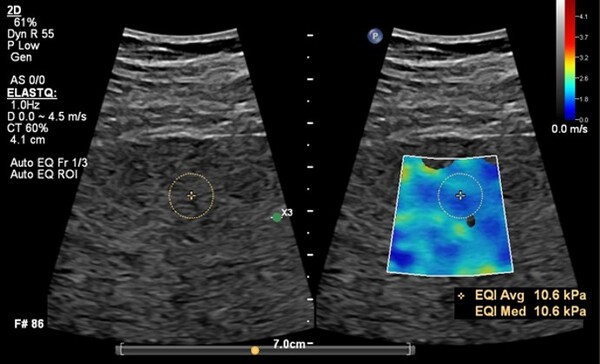 새로운 버전의 에픽 엘리트에는 워크플로우를 향상하는 간섬유화 검사 기능인 ‘오토 엘라스트큐(Auto ElastQ)’를 새롭게 탑재했다. 전단파 탄성 초음파(Shear Wave Elastography,SWE) 데이터를 자동으로 분석하고 최적의 측정 프레임과 검사 관심 영역(ROI, Region of Interest)을 설정하는 기능으로 검사 효율성과 진단 정확도를 향상한다.