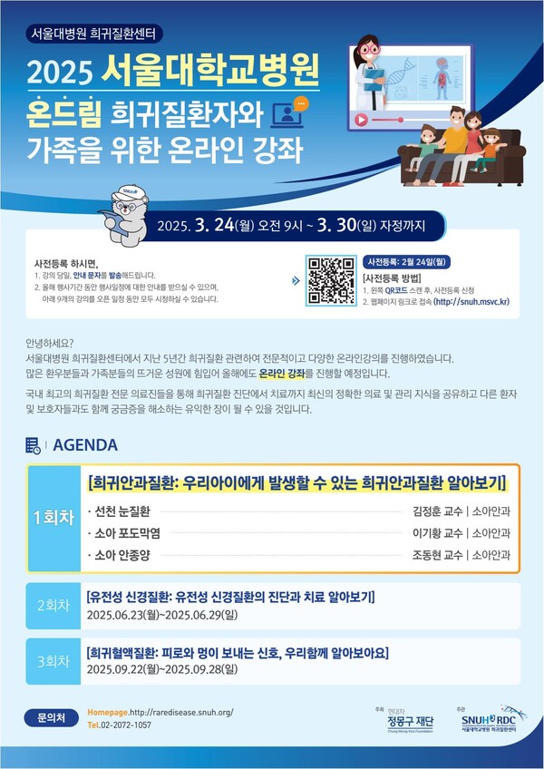 한편, 이번 2025년 1회차 공개강좌 이후, 2회차(6/23~6/30, 유전성 신경질환) 및 3회차(9/22~9/28, 희귀혈액질환) 강좌도 진행될 예정이다.
