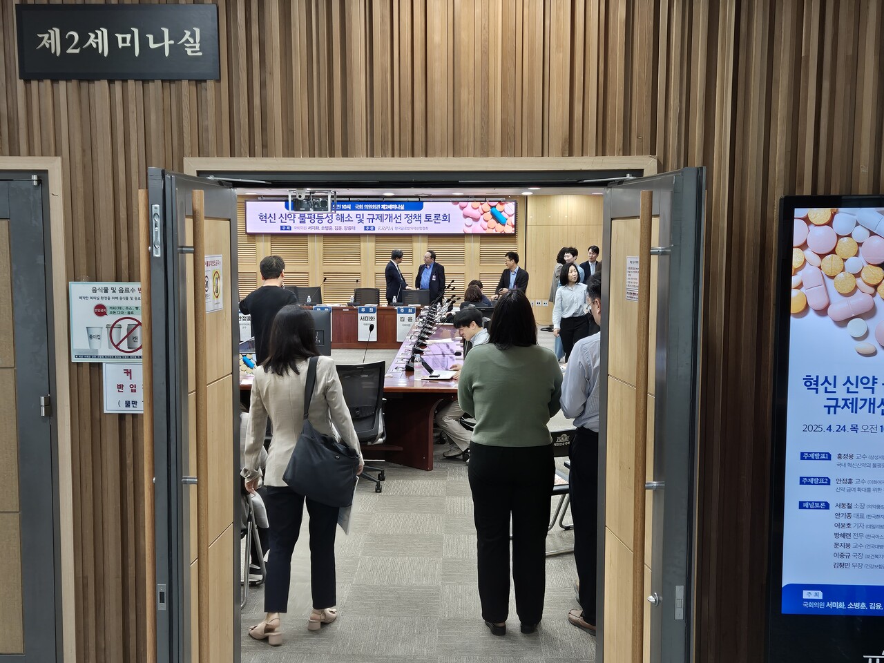 24일 오전 서울 여의도 국회의원회관 제2세미나실에서 열린 '혁신신약 불평등 해소 및 규제개선 정책 토론회'에서는 다중적응증 약가 제도 도입을 놓고 업계와 정부 간에 의견을 나누는 자리가 열렸다.