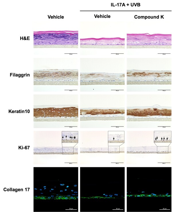 [팜뉴스=김태일 기자] 아모레퍼시픽이 피부에서 진행되는 노화를 평가할 수 있는 시스템을 개발하고, 진세노믹스™의 피부 저속 노화 효능을 밝혔다. 관련 연구 결과는 국제 학술지 ‘Journal of Ginseng Research(인삼 연구 저널)’ 온라인판에 지난달 게재했다. (논문명: Compound K suppresses epidermal aging induced by IL-17A treatment and UVB irradiation)