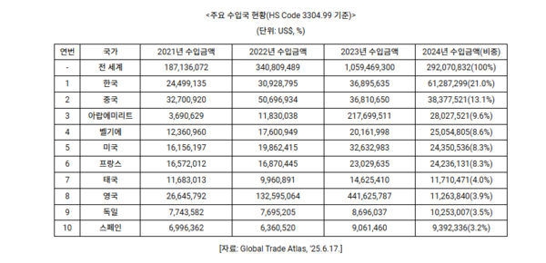 화장품 수입 시장 19.5조 원 돌파… 한국산 점유율 1위
