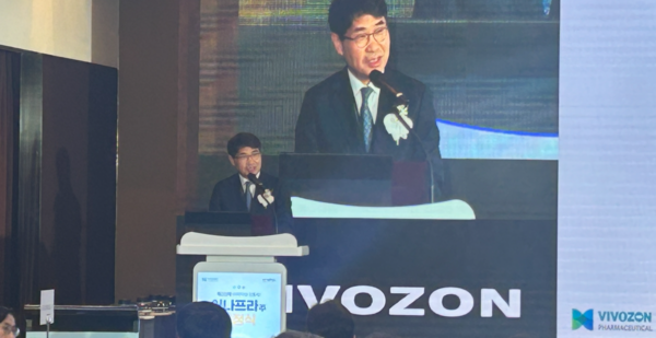 행사는 캘리그라피 퍼포먼스를 시작으로 장부환 대표이사의 환영사, 개발자인 이두현 비보존그룹 회장의 감사 인사, 신약 비전 선포식, 어나프라주 출정식 순서로 진행됐다.