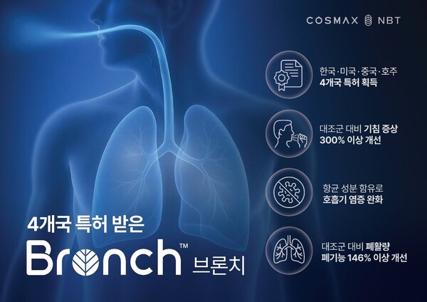 코스맥스엔비티 관계자는 "세계보건기구(WHO)가 발표한 세계 사망 원인에서 4위를 차지하는 만성폐쇄성폐질환은 미세먼지 등이 원인이기 때문에 일상에서 지속적인 증상 완화와 관리가 필요한 질병이다"며 "과학적으로 검증된 소재를 통해 국민 건강 증진에 기여할 것"이라고 말했다.