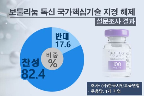 한국시민교육연합이 최근 실시한 조사에서는 국내 톡신 기업 중 절대다수가 핵심기술 해제에 찬성하는 것으로 나타났다. 기업 응답 기준 약 82%가 해제에 동의했으며, 이는 현행 지정의 실효성에 대한 업계 내부 의문을 보여준다.