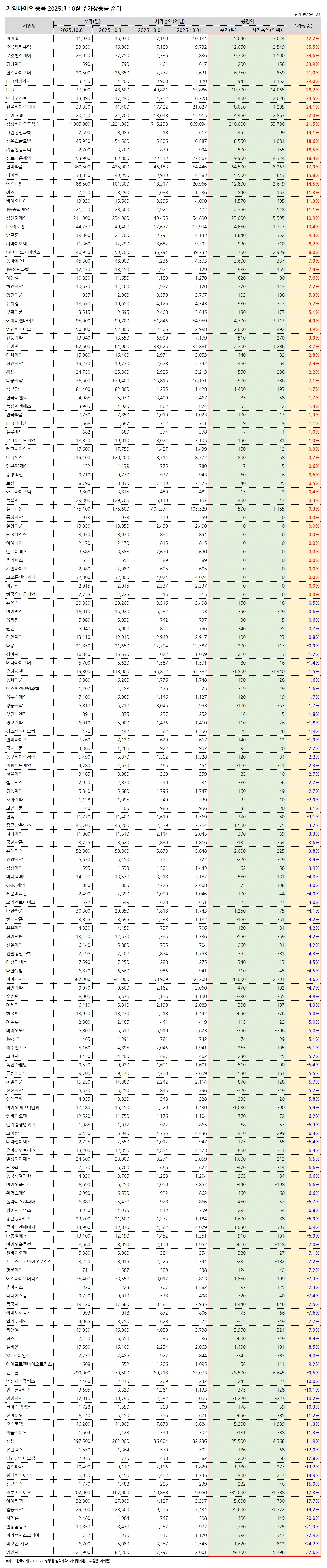 조사대상 중에서 2025년 10월에 주가수익률 1위를 기록한 곳은 파미셀로 확인됐다.