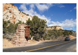 신성한 협곡이라는 뜻의 자이언 캐니언은 장엄하고도 웅장한 모습을 드러낸다. 입구에서부터 느껴지는 거대한 산과 바위의 형태에서 신이 살고 있는 듯한 성스러움과 신비함을 느끼게 한다. 이곳은 하이킹을 할 수 있는 쉬운 코스부터 고난도의 기술을 요구하는 어려운 등산로를 보유하고 있다. 걷는 게 힘들다면 차로 캐니언을 통과하며 자연이 선물한 절벽과 협곡의 절경을감상하면 된다.