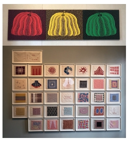 부르주아의 작품과 나란히 전시돼 있는 것은 쿠사마 야요이의 ‘호박’이다. 마치 도로 위의 신호등처럼 빨강과 노랑, 초록색의 원색이 뚜렷한 대비를 이루고 있는 이 작품은 그녀의 트레이드 마크인 둥근 점이 호박의 굴곡을 따라 리드미컬하게 반복되고 변화하면서 마치 꿈틀거리는 듯한 생동감을 자아낸다.