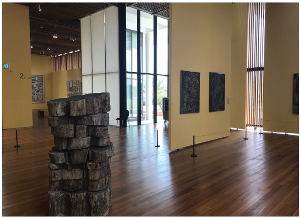 이번에 ‘추상의 서사’라는 주제로 그의 대표적 추상작품을 전시한 이응노 미술관은 그의 작품을 가장 다양하게 접할 수 있는 곳이다. 프랑스 건축가 로랑 보두엥 (Lauren Beaudouin)이 이응노 작가의 작품세계에서 영감을 받아 설계한 것으로도 유명한 미술관은 뒤로는 한밭 수목원을 두고 앞으로는 잔디밭이 넓게 깔린 야외정원을 두고 있어 경관 또한 뛰어나다. 대전시에서 운영하는 이곳에는 1950년대에서 80년대까지 그가 작업했던 회화, 꼴라쥬, 조각, 태피스트리 등 대표작품들이 소장돼 있다.