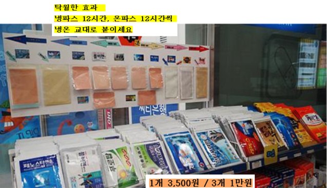 <매출 증대를 위해 두 가지 문구를 추가한 파스 오픈 진열대>
