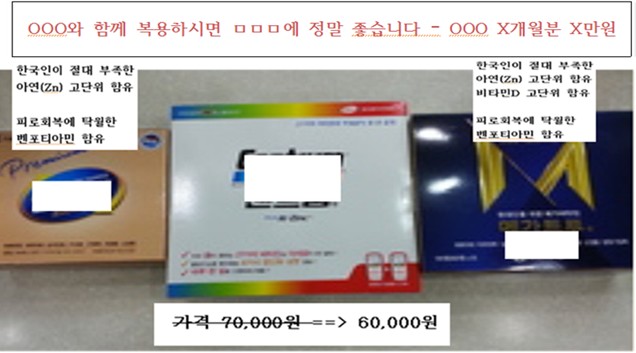 다만, 의약품과 건기식을 함께 진열할 경우에는 건기식임을 표기해야만 하고, 건기식에 대한 POP 문구에서 금기되는 표현이 많음을 주의하여야만 한다.